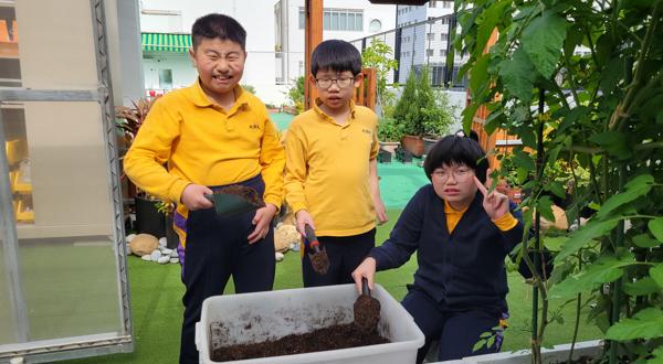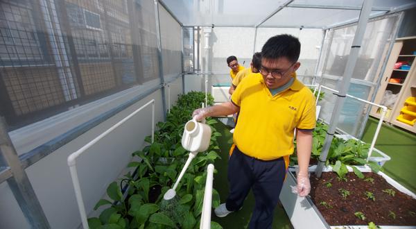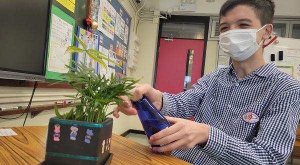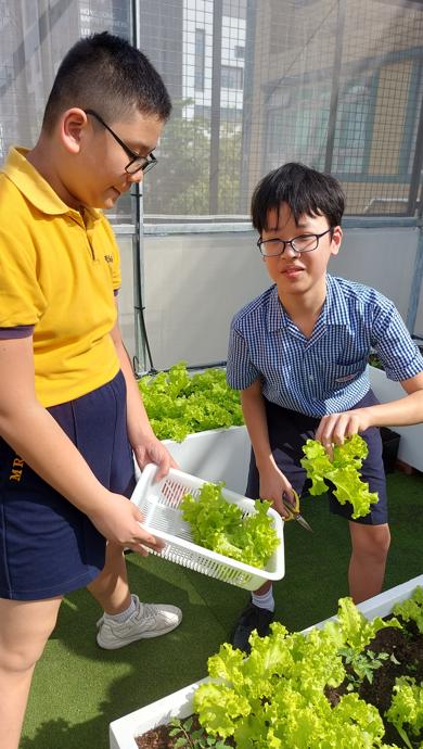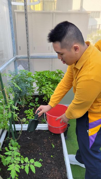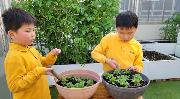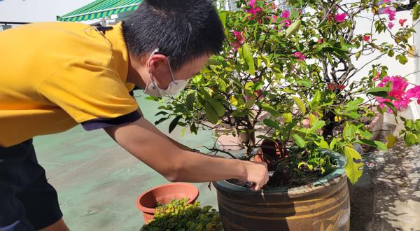 而園圃保養計劃方面,由老師帶領種植小組學生定期為校內各種植物添加泥土及肥料,讓校內的常青植物生長更好。