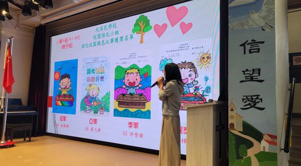 我們也在校內推行校園綠化填色活動,班際盆栽設計(用環保物料)及種植比賽以提升學生環保和植物護理知識。